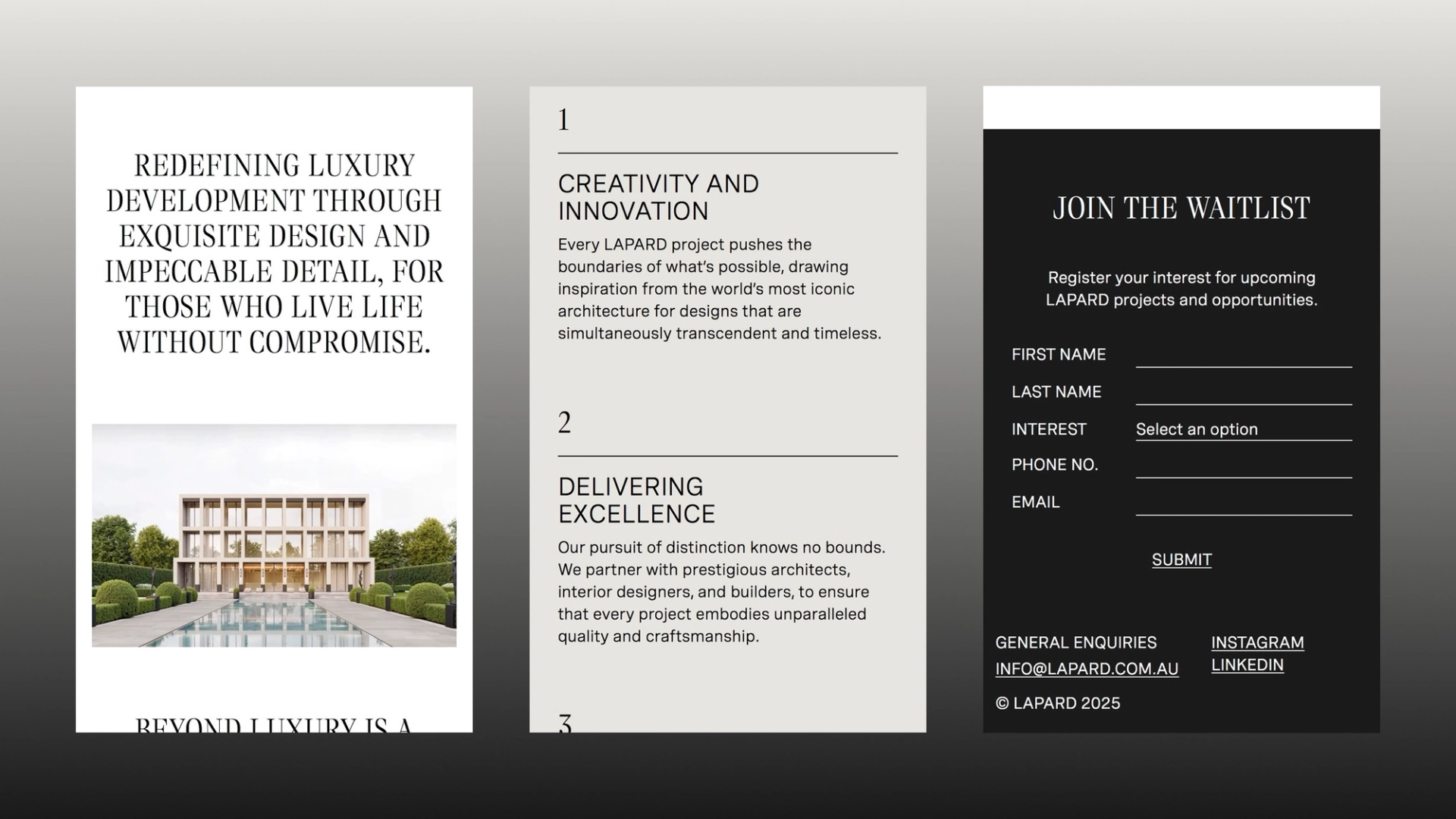 LAPARD is an ultra-high-end luxury development firm dedicated to creating residences of inimitable refinement and unparalleled elegance, guided by principles of exquisite design and meticulous detail.